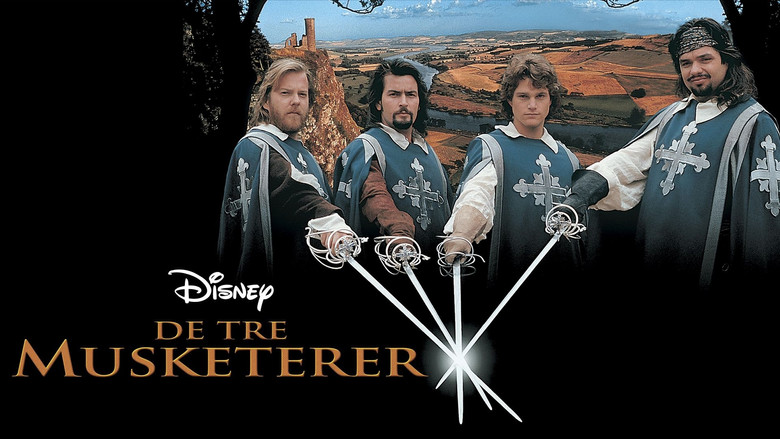 **Uma adaptação satisfatória, ainda que com algumas falhas óbvias.** *Os Três Mosqueteiros* é um dos livros de ficção mais adaptados ao cinema. Esta é mais uma adaptação a acrescentar ao extenso rol e, apesar de não ser das melhores, é uma das melhores que foi feita nos anos mais recentes (pelo menos, daquelas que eu vi até agora). Mais séria que o “clássico pastelão” dos anos Setenta, é mais historicamente rigorosa do que o blockbuster de 2011, apesar de continuar a ser uma aventura e ter muitos momentos onde o rigor histórico é, a bem dizer, esquecido num canto. Isso acontece, particularmente, com a maneira como quase todas as personagens se comportam e agem, e que tem muito mais a ver com o século XX do que com o século XVII. Como eu disse, é um filme com falhas. O elenco é bastante bom, no geral. Não nos brinda com um espectáculo interpretativo, mas faz o necessário para apresentar um bom trabalho. Chris O’Donnell foi satisfatório, parece jovem e enérgico o suficiente para a personagem, e parece-me o melhor D’Artagnan dos três filmes que vi até agora (1973, 2011 e este). Charlie Sheen, Kiefer Sutherland e, especialmente, Oliver Platt, são bastante eficazes, divertidos e enérgicos como Mosqueteiros. Rebecca DeMornay é mesmo muito bonita e aproveitou ao máximo os seus dotes físicos e o seu magnífico cabelo ao dar vida à bela e perigosa Milady. Gabrielle Anwar e Hugh O’Connor são eficazes como rei e rainha, mas por vezes parecem mornos e desprovidos de personalidade Pela negativa, destacaria a péssima interpretação de Tim Curry como Richelieu. Apesar das boas falas e diálogos, ele é histriónico e verdadeiramente demonizou a personagem. Michael Wincott também parece mais tenebroso e diabólico do que deveria ser, mas não soa tão exagerado. Tecnicamente, é um filme que está no padrão dos filmes de aventuras da década de Noventa. Tem uma cinematografia banal, mas os cenários e figurinos parecem satisfatórios. Os locais de filmagem foram muito bem seleccionados e incluem o Palácio Imperial de Viena e o Castelo Liechtenstein. Os efeitos visuais e especiais cumprem o seu papel e as cenas de luta e de acção foram bastante bem feitas, apesar de não parecerem genuínas. Michael Kamen deixa-nos uma excelente banda sonora, adequadamente épica e grandiosa.