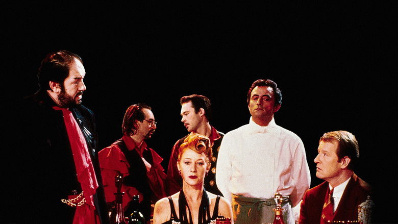O gângster Albert Spica (Michael Gambon) janta todas as noites no restaurante Le Hollandais em companhia de seus capangas e sua esposa Georgina (Helen Mirren). Cansada dos modos violentos e grosseiros do marido, Georgina flerta com um solitário Michael (Alan Howard). Com a cumplicidade do chefe de cozinha Richard (Richard Bohronger), os dois amantes fazem sexo às escondidas no banheiro e na despensa do restaurante, enquanto Albert devora prato após prato em sua mesa. Quando Albert descobre a traição da esposa, desfecha uma cruel vingança contra Michael, que por sua vez será vingado por Georgina.