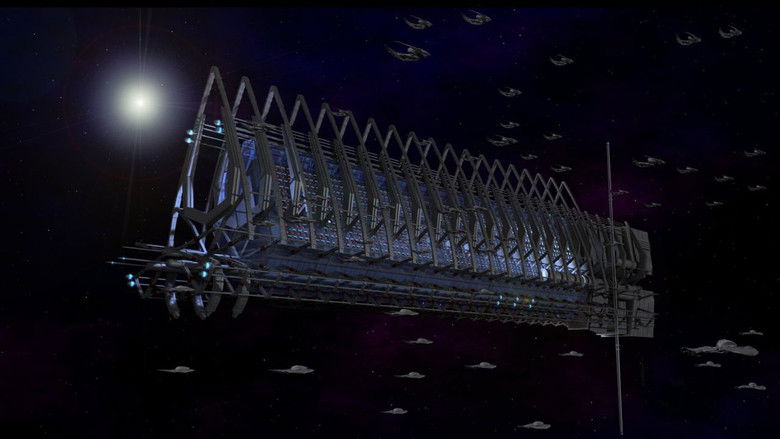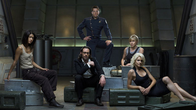 Cylons - máquinas criadas por humanos - atacam seus criadores que agora vagam pelo espaço a procura da Terra. As 12 Tribos de Kobol tem que lidar com falta de recursos, revolta, conspirações políticas enquanto fogem dos Cylons. Refilmagem da série de mesmo nome da década de 80. Battlestar Galactica não é uma série comum de ficção cientí­fica, aborda religião, preconceito, polí­tica e diversos outros temas em um cenário inusitado, sem deixar de lado a ação e o suspense que se espera de uma série deste tipo.