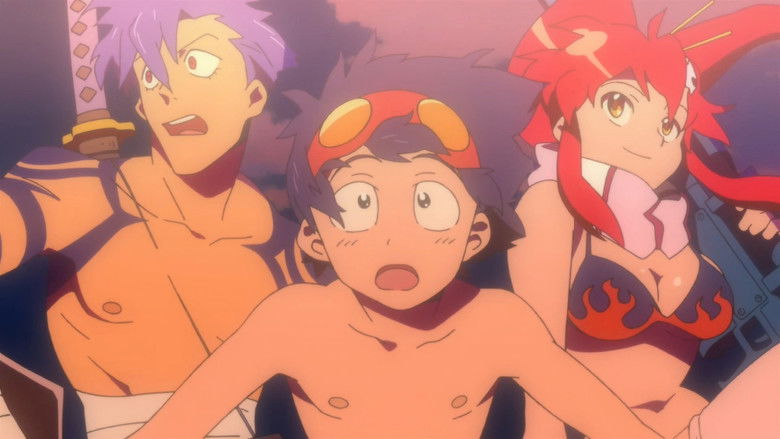 Simon é um cavador de túneis que vive em um povoado subterrâneo. Os antigos líderes do povoado contam histórias de ”coisas terríveis“ que existem na superfície e punem severamente aqueles que são contrários a essa filosofia. Um dos principais ”rebeldes“ dessa história é justamente Kamina, que vive tentando das formas mais inusitadas chegar até a superfície a fim de conhecê-la, especialmente depois que seus pais morreram em um dos terremotos que acontecem a todo o momento. Durante uma escavação, Simon encontra uma estranha mini-broca que brilha sozinha, e ele nem imagina para quê ela serve.
