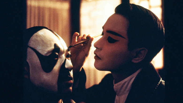Ao mesmo tempo, revela-nos os bastidores da ópera cantonesa, um estilo cultural tradicional chinês. No filme, dois jovens aprendizes vivem uma vida cruel e infeliz na escola da ópera, com espancamentos diários e abusos variados, inclusivamente sexuais. Um deles fará as personagens femininas das histórias, como um travesti, posto que as mulheres não são admitidas no palco. Há, ao longo do filme, grande confusão entre a vida e a arte, e muitas vezes sentimos que estes actores estão a confundir as coisas, a viver na vida real as suas personagens e a transpor para o palco a sua vida real.