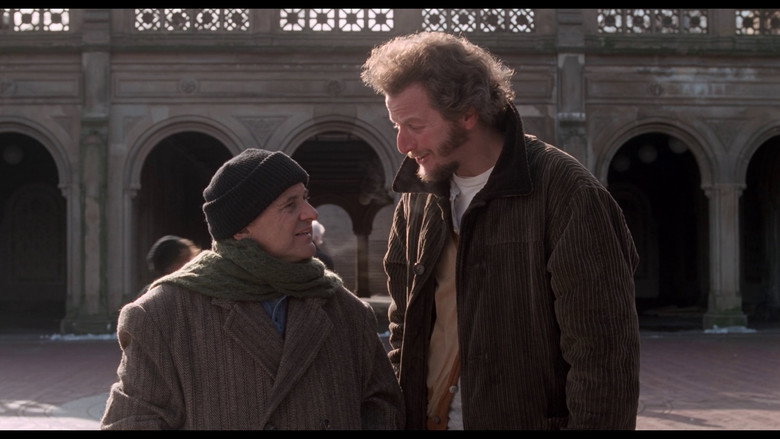**Ombreia muito bem com o primeiro filme.** Este é um bom exemplo de uma sequela que conseguiu ombrear muito bem com o filme que lhe deu origem: apesar de ter falhas e de não ser mais capaz de nos surpreender, este filme cumpre o que promete e consegue satisfazer bem as nossas expectativas, ainda que esteja, virtualmente, a dar-nos mais do mesmo que já vimos. Sim, porque as diferenças entre este filme e o primeiro são quase meramente semânticas: agora a história ambienta-se em Nova Iorque numa casa em reformas que pertence a um parente de Kevin. Os vilões são os mesmos: eles conseguiram fugir da prisão e estão determinados a vingar-se. O segredo do sucesso deste filme é a sensação de coesão que constrói com o primeiro: os dois filmes casam perfeitamente, são um trabalho só, como um filme dividido em partes. Isso foi conseguido graças à feliz manutenção dos elementos-chave da produção e elenco: Chris Columbus mantém-se na direcção e continua o trabalho já começado, assim como Culkin, Pesci e Stern, que voltam aos papéis que já conhecem para mais uma rodada de gargalhadas. O público não podia pedir mais. A magia da época natalícia em Nova Iorque, com neve e um cenário urbano adequadamente mágico – e limpo de todas as imundícies que sabemos existirem na Grande e Suja Maçã – oferece-nos a cor e a luz da época mais bonita do ano, o calor humano que amolece até os corações mais empedernidos da nossa sociedade embrutecida. A cidade está maravilhosa neste filme, que é um verdadeiro postal de férias natalícias que certamente ajudou a popularizar Nova Iorque como destino para umas férias de final de ano. De resto, não há verdadeiramente muito a ser dito que já não tenha sido dito no texto que fiz para o primeiro filme: as qualidades estão cá todas, e alguns problemas de lógica que apontei no primeiro filme foram habilmente limados e escondidos aqui. O argumento e os diálogos continuam a funcionar muito inteligentemente, o humor “slapstick” está todo aqui (embora muitas das piadas sejam copiadas a papel-químico, o que é preguiçoso para dizer o mínimo) e o herói continua tão agradável como no início. Não é raro que, nas TVs mais generalistas, este filme seja exibido logo a seguir ao primeiro, numa “maratona” de cinema dedicada aos dois filmes, e isso faz todo o sentido na minha opinião.