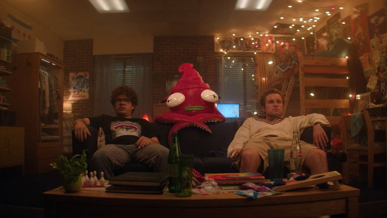 Um grupo de universitários desce para pegar uma pizza no sa...